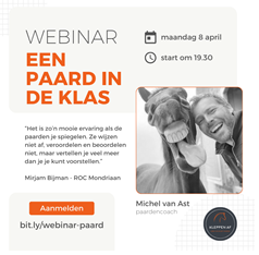 dan in voor het webinar 𝘌𝘦𝘯𝘱𝘢𝘢𝘳𝘥 𝘪𝘯 𝘥𝘦 𝘬𝘭𝘢𝘴. Een webinar vanuit onze paardentuin 🌳